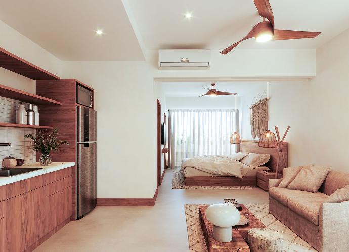 Descripción: Departamento con sistema lock-off de 2 habitaciones (101m2) en edificio Habanero Living ubicado en la zona Turística de Playa del Carmen. Cuenta con 2 baños, 2 closets, 2 balcones, 2 cocinas y estancia.